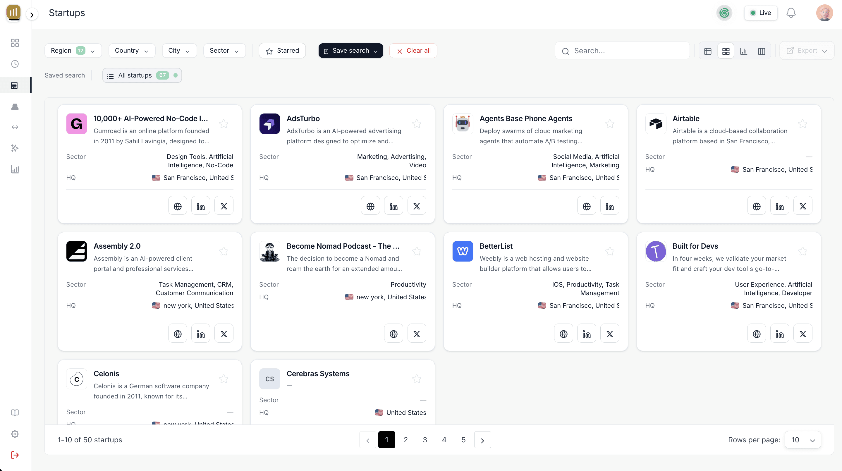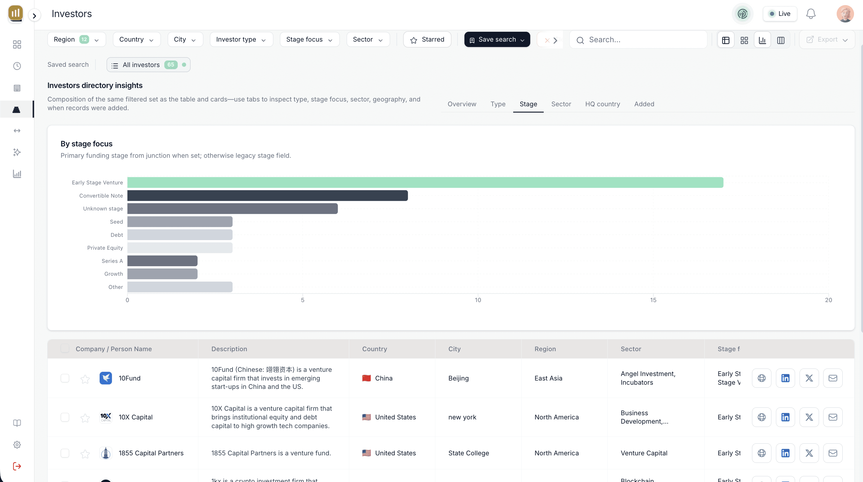 Find active VCs, angels, funds, and funded startups. Filter by stage, sector, and geography worldwide.