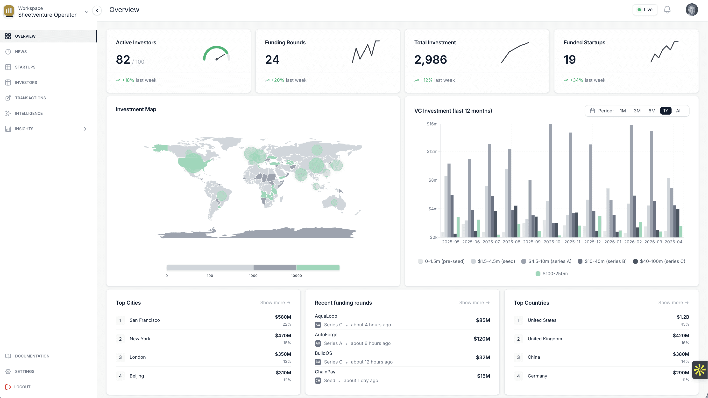Discover active investors, funded startups, and market momentum — all in one place.
